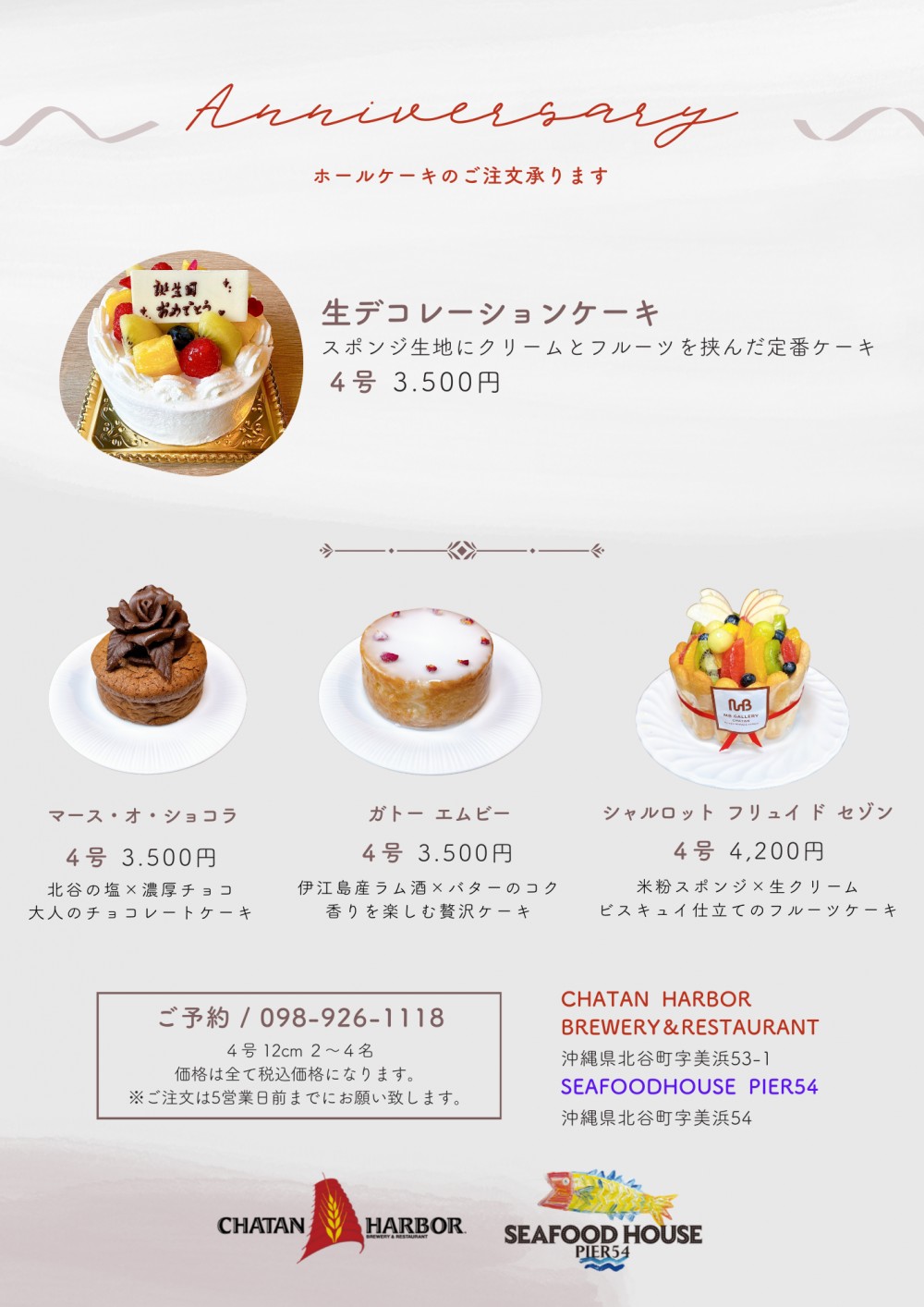 お誕生日や記念日など、大切な日のためのホールケーキをご用意しております。